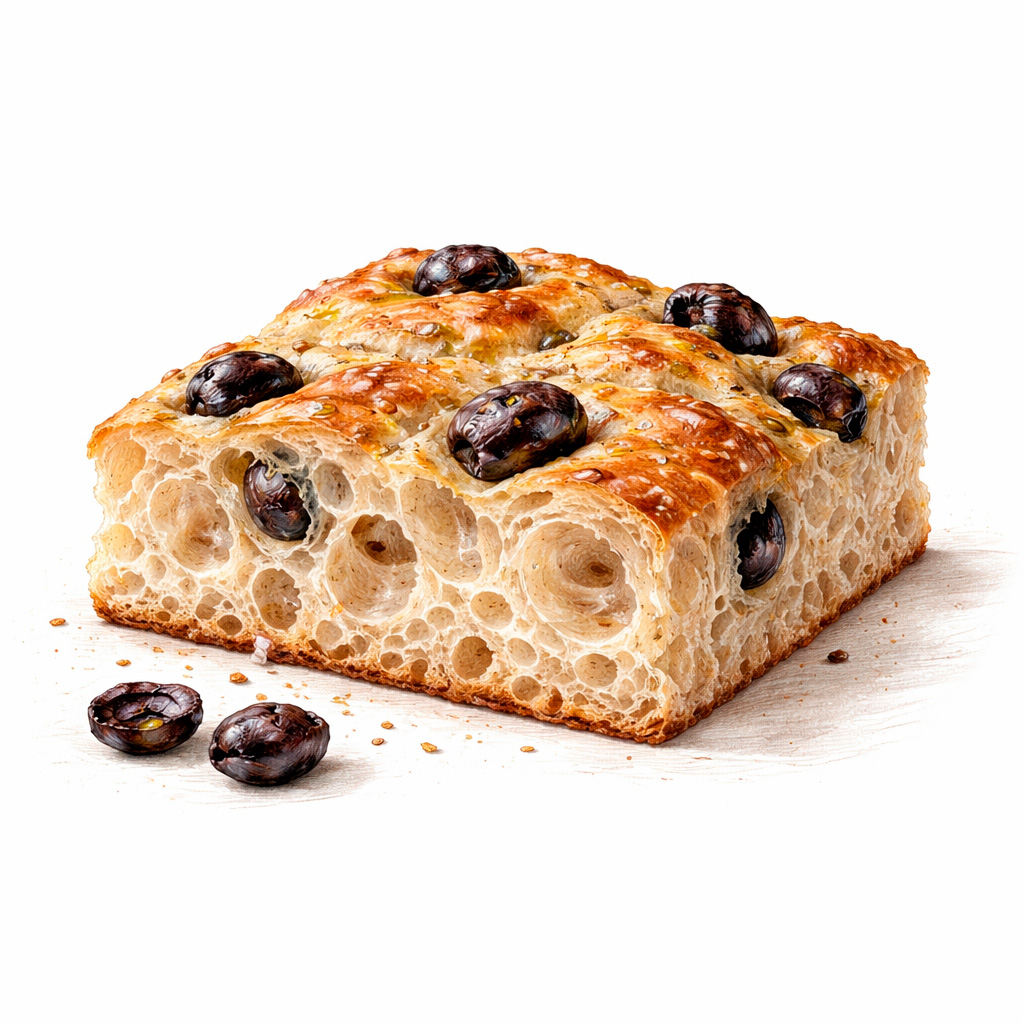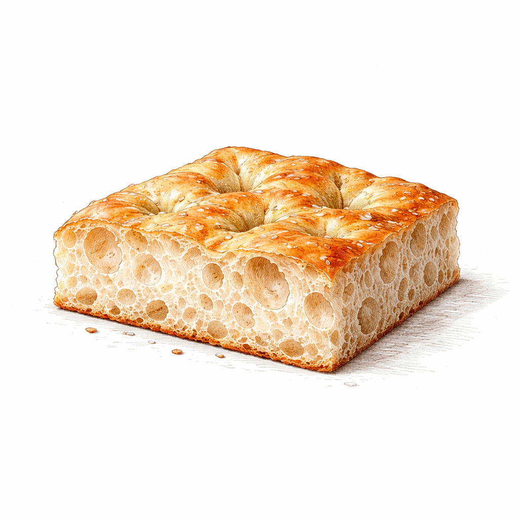 Una masa sencilla, hecha con tiempo, aceite de oliva virgen extra y fermentaciones lentas. Esponjosa por dentro, ligeramente crujiente por fuera.
