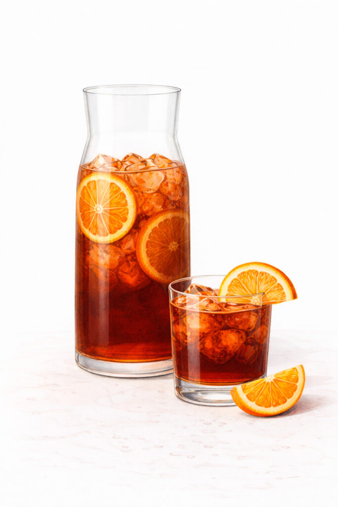 Inspirado en el clásico, pero más suave. Campari, Vermut y Sifón.